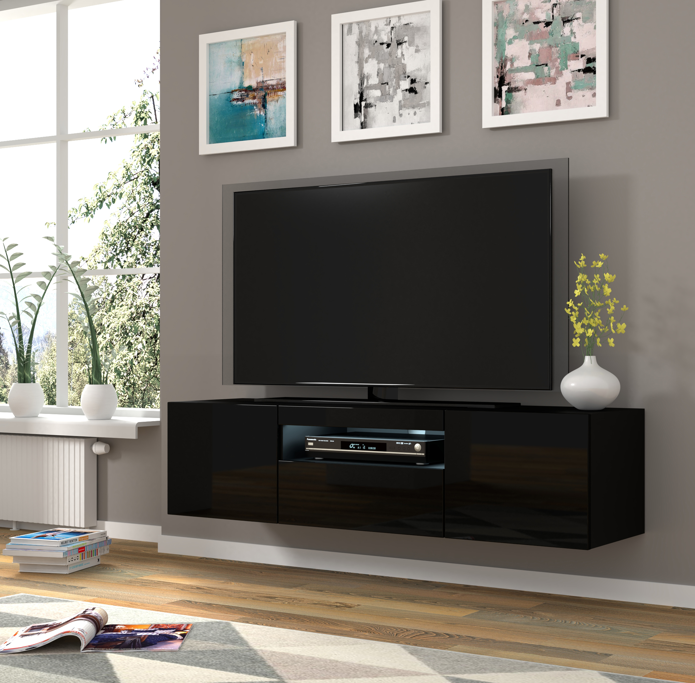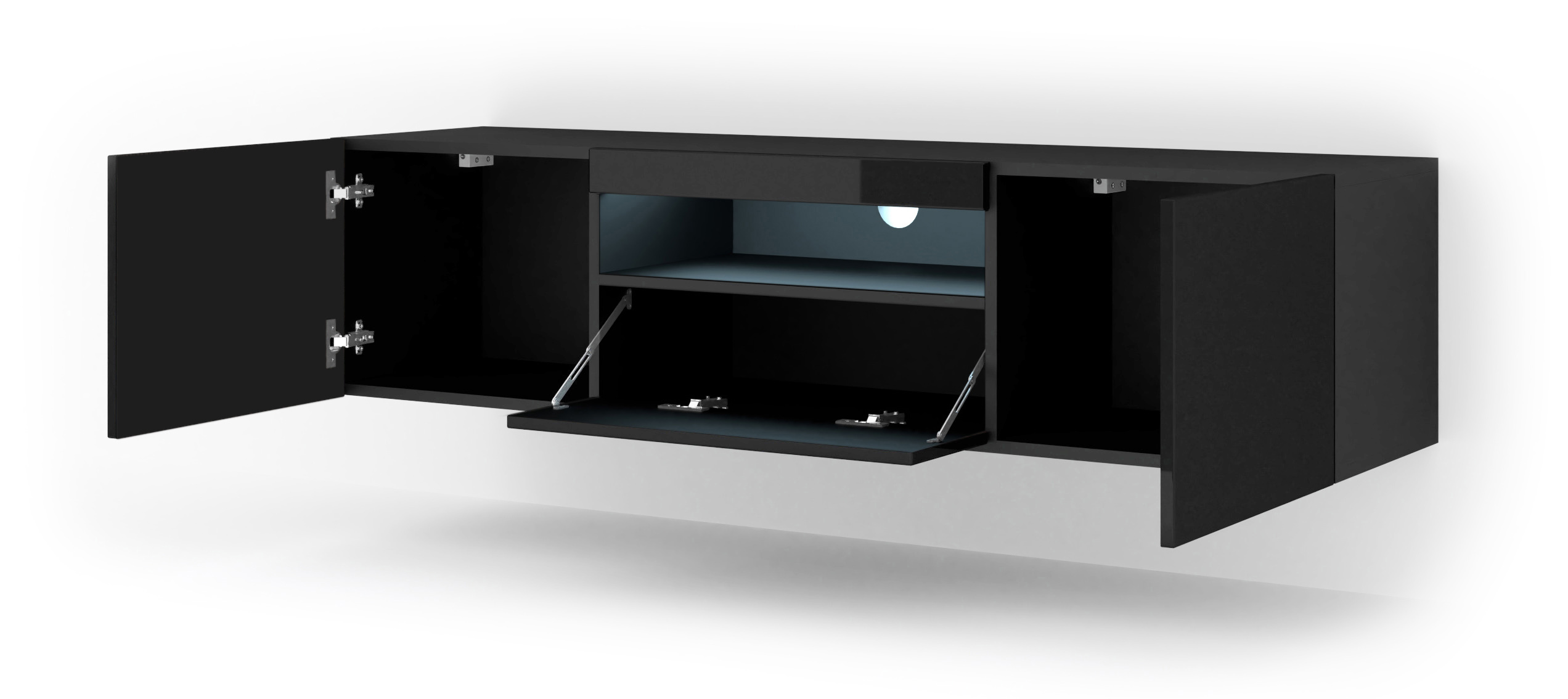 Szafka RTV AURA 150 uniwersalna czarny połysk + LED