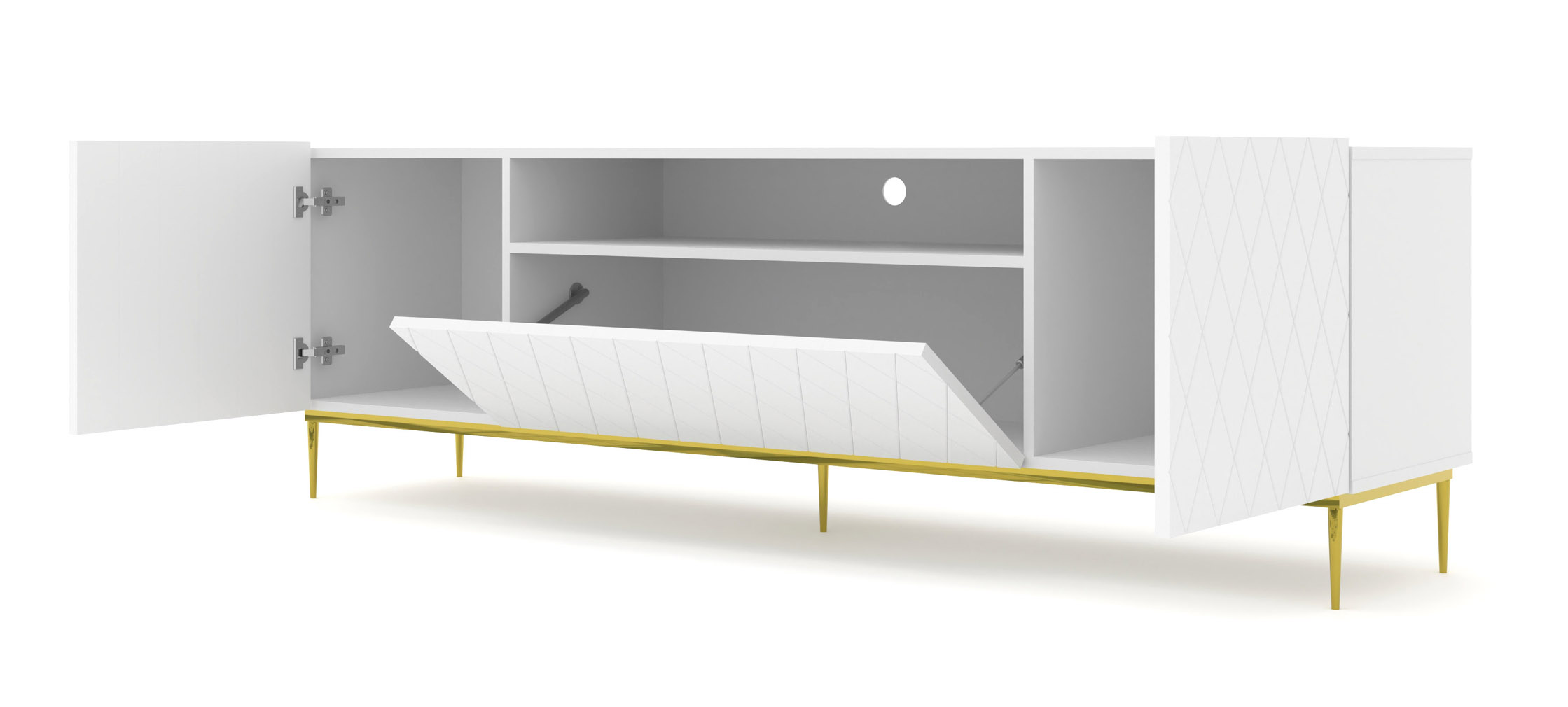 Szafka RTV DIUNA 193 cm 2D1K biały mat złota rama