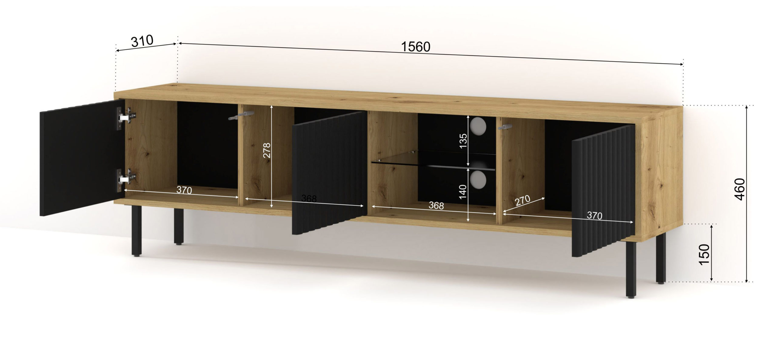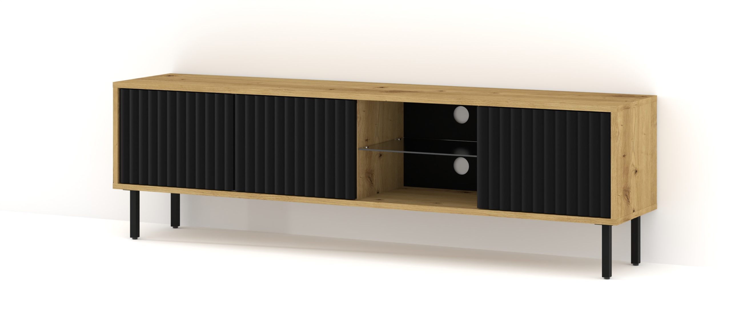 Szafka RTV MITA 156 cm wisząca frezowana dąb artisan/czarny mat