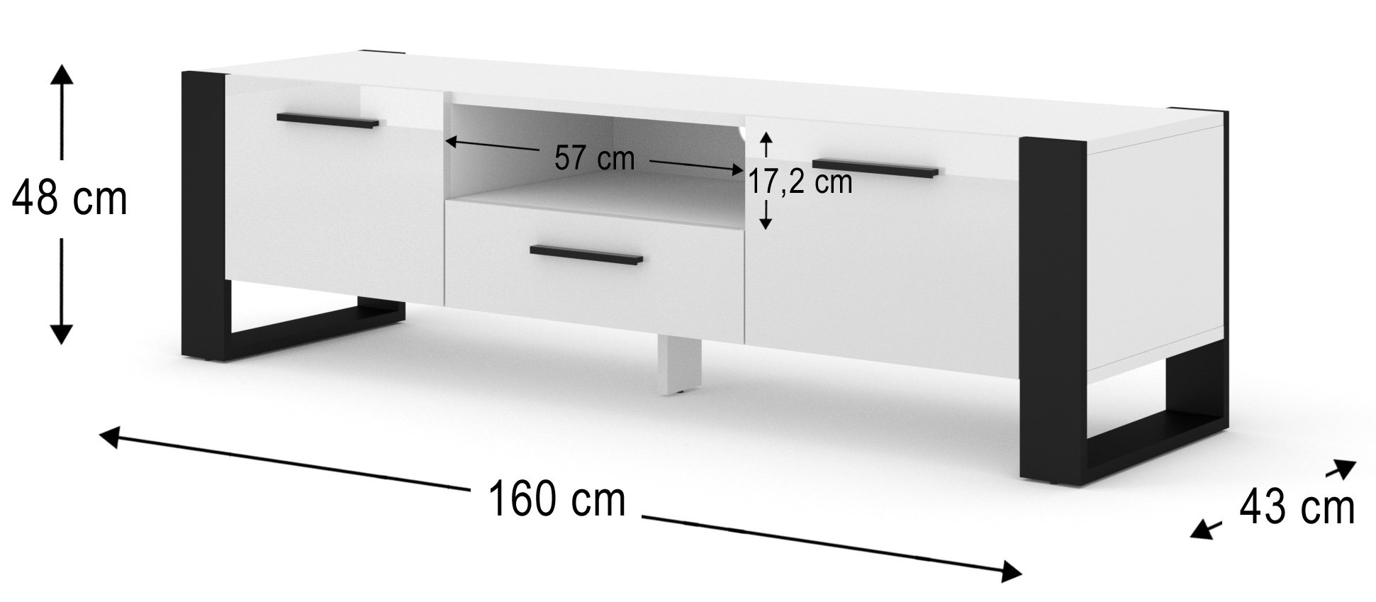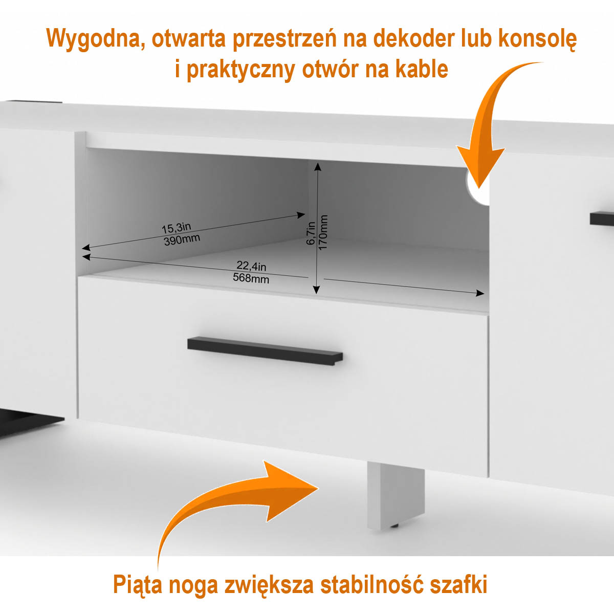 Szafka RTV NUKA 160 cm biały mat stojąca pod telewizor