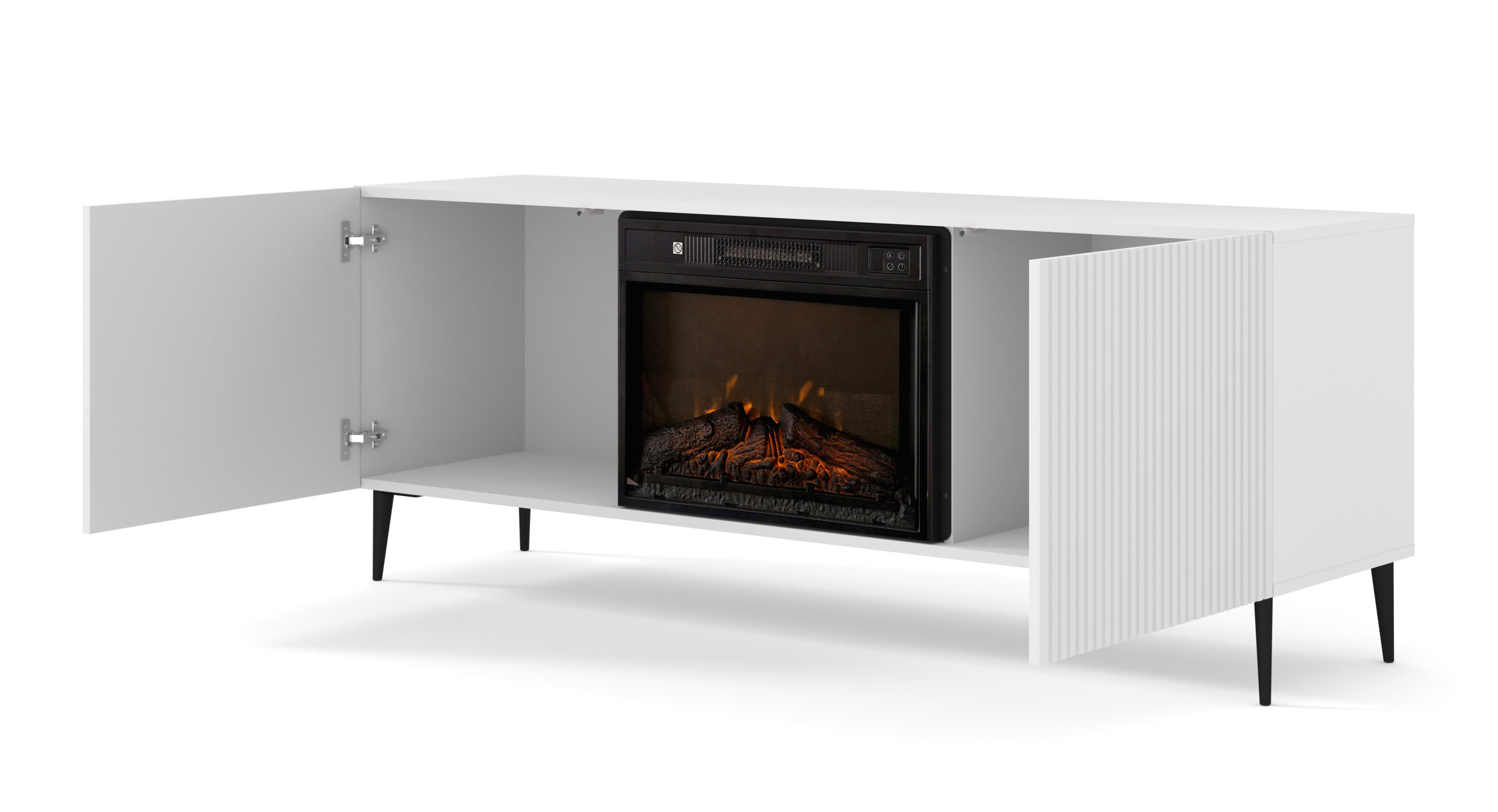Szafka RTV RAVENNA 2D 170 cm z kominkiem biała/biała