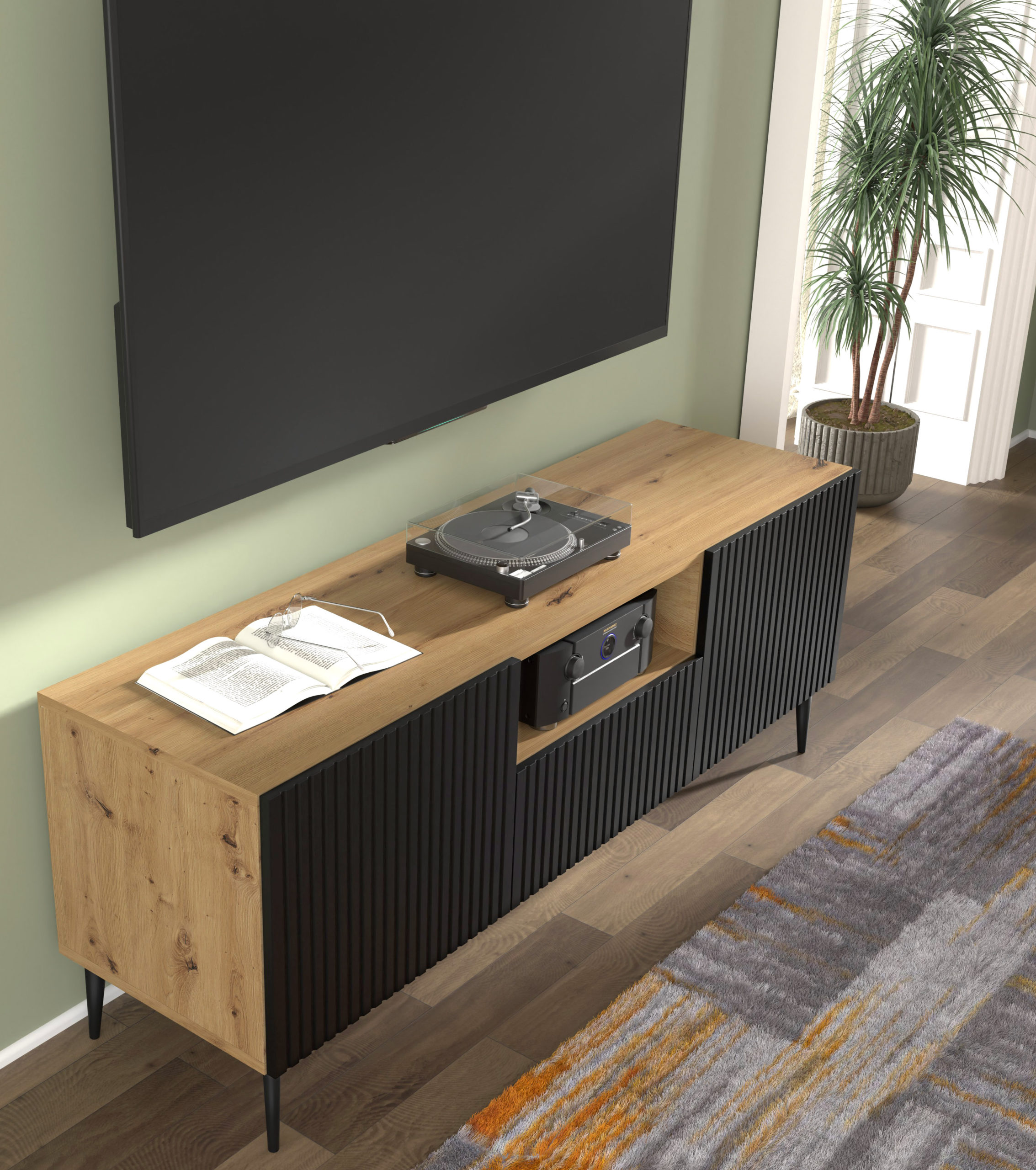 Szafka RTV Ravenna B 150 cm 2D1S artisan czarny na szpilce