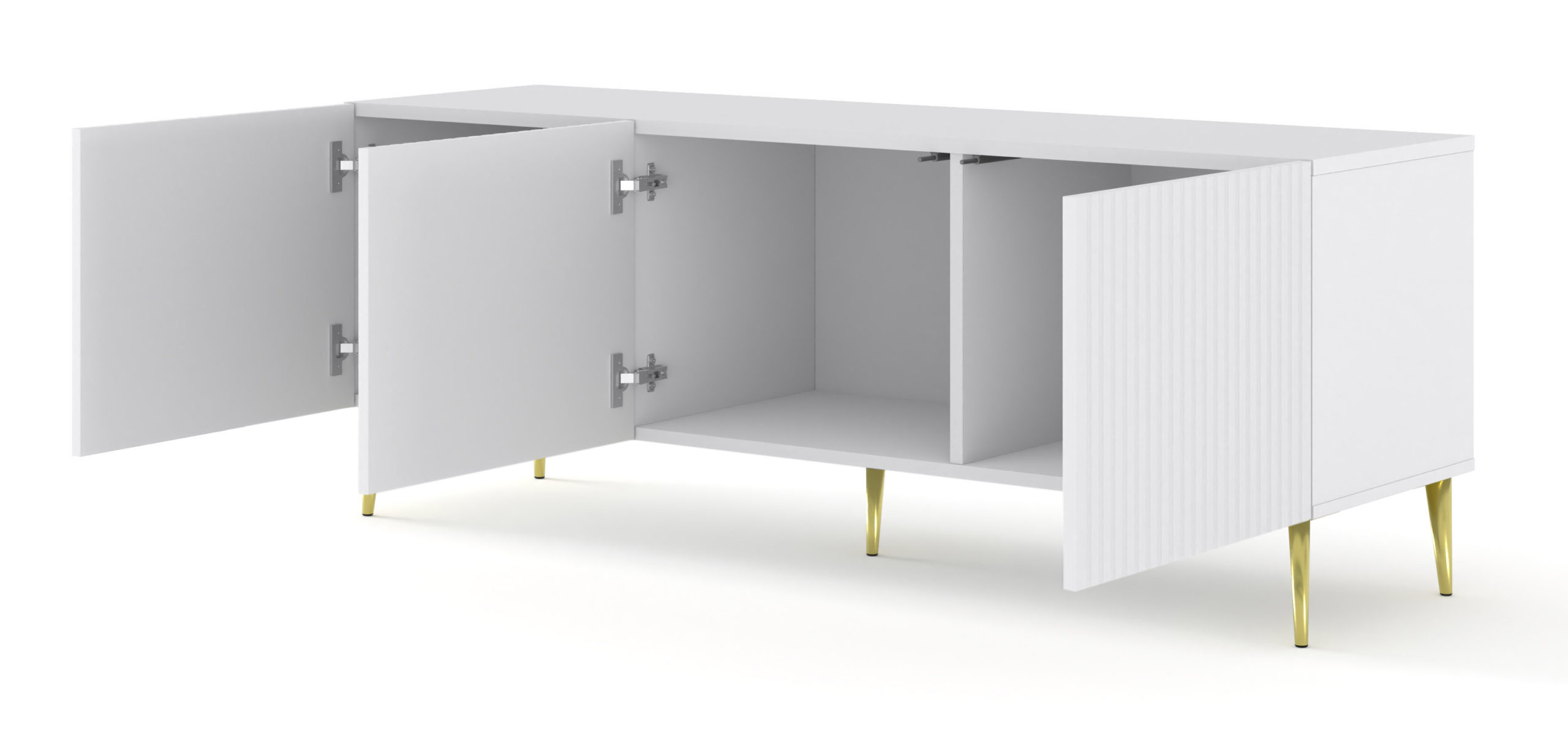 Szafka RTV RAVENNA B 150 cm 3D biały mat szpilki złote