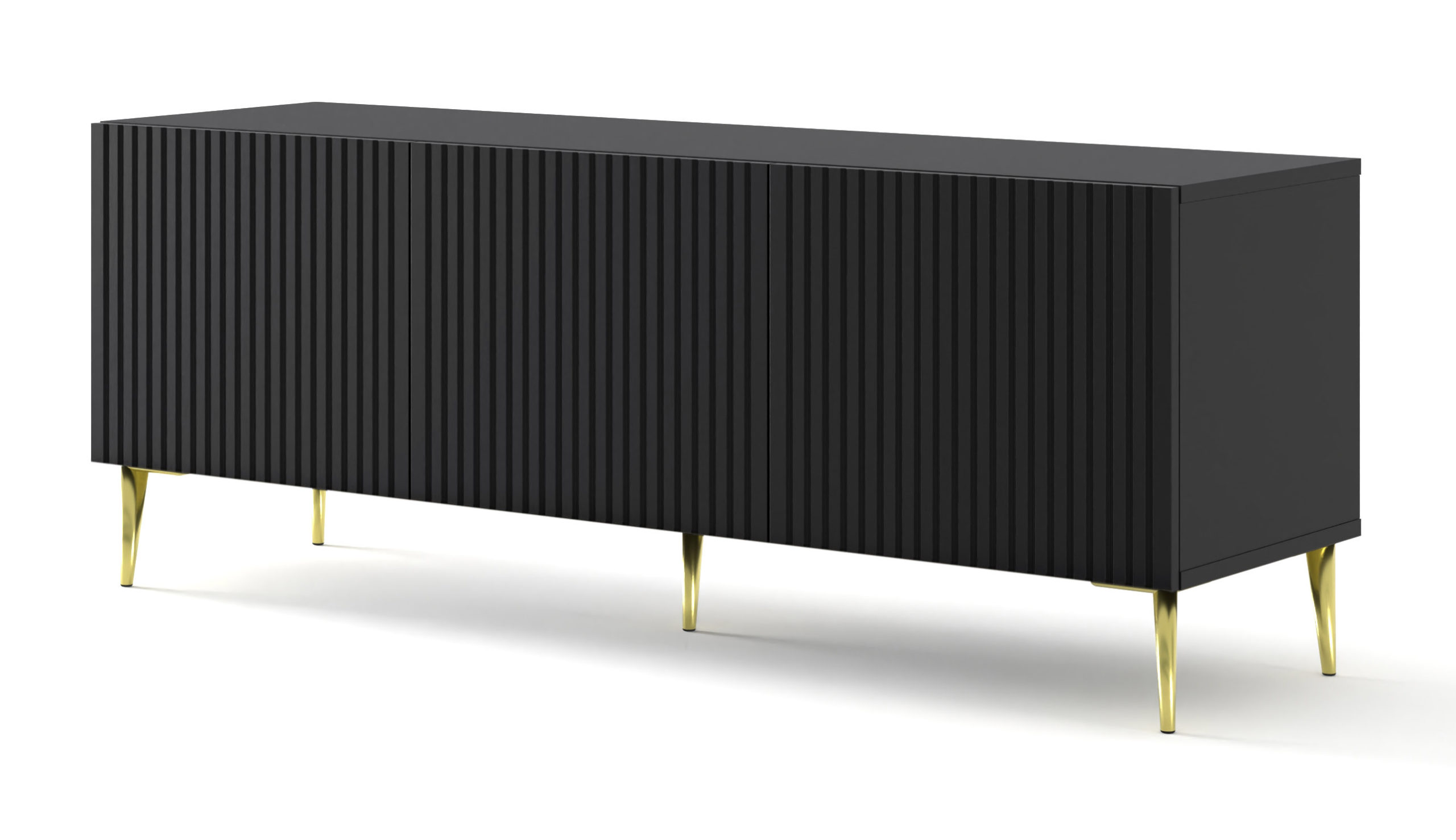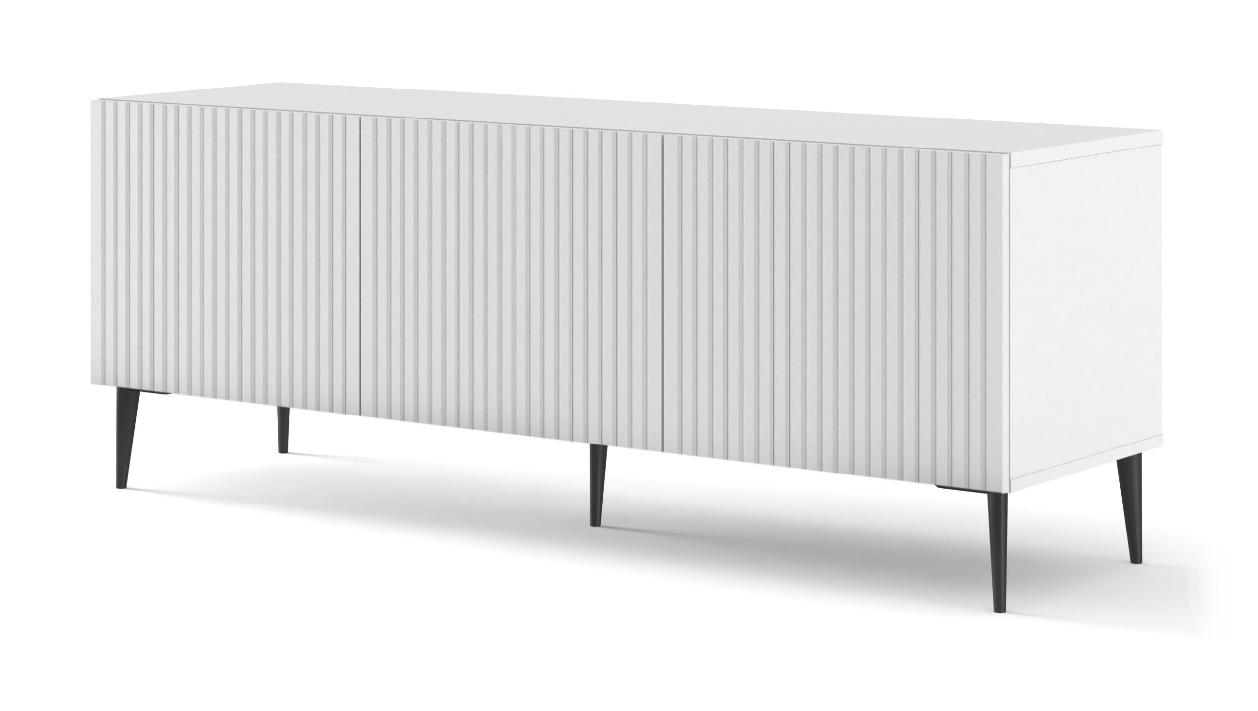 Wprowadź do swojego salonu powiew włoskiego szyku z szafką RTV Ravenna. Ta elegancka bryła w kolorze matowej bieli zachwyca subtelnymi frezowaniami, które nadają jej unikalnej tekstury. Złote, metalowe nóżki stanowią biżuteryjny akcent, nadając całości luksusowego charakteru, a system push to open pozwala cieszyć się nieskazitelną formą bez zbędnych detali. To idealne rozwiązanie dla miłośników minimalizmu, którzy szukają mebla funkcjonalnego, a zarazem stanowiącego designerskie dzieło sztuki. Odkryj nowy wymiar elegancji w swoim domu.