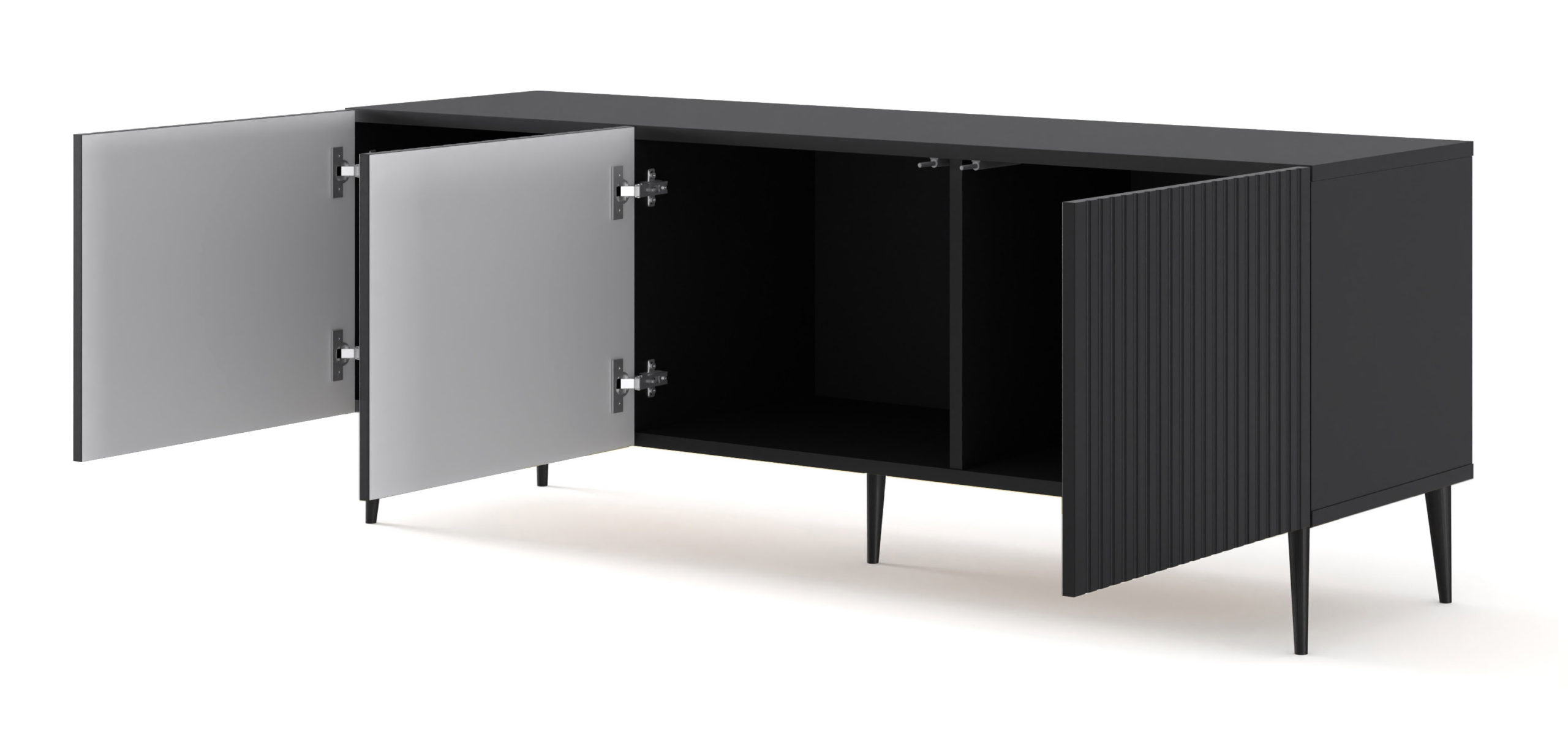Szafka RTV RAVENNA B 150 cm 3D czarny mat szpilki czarne