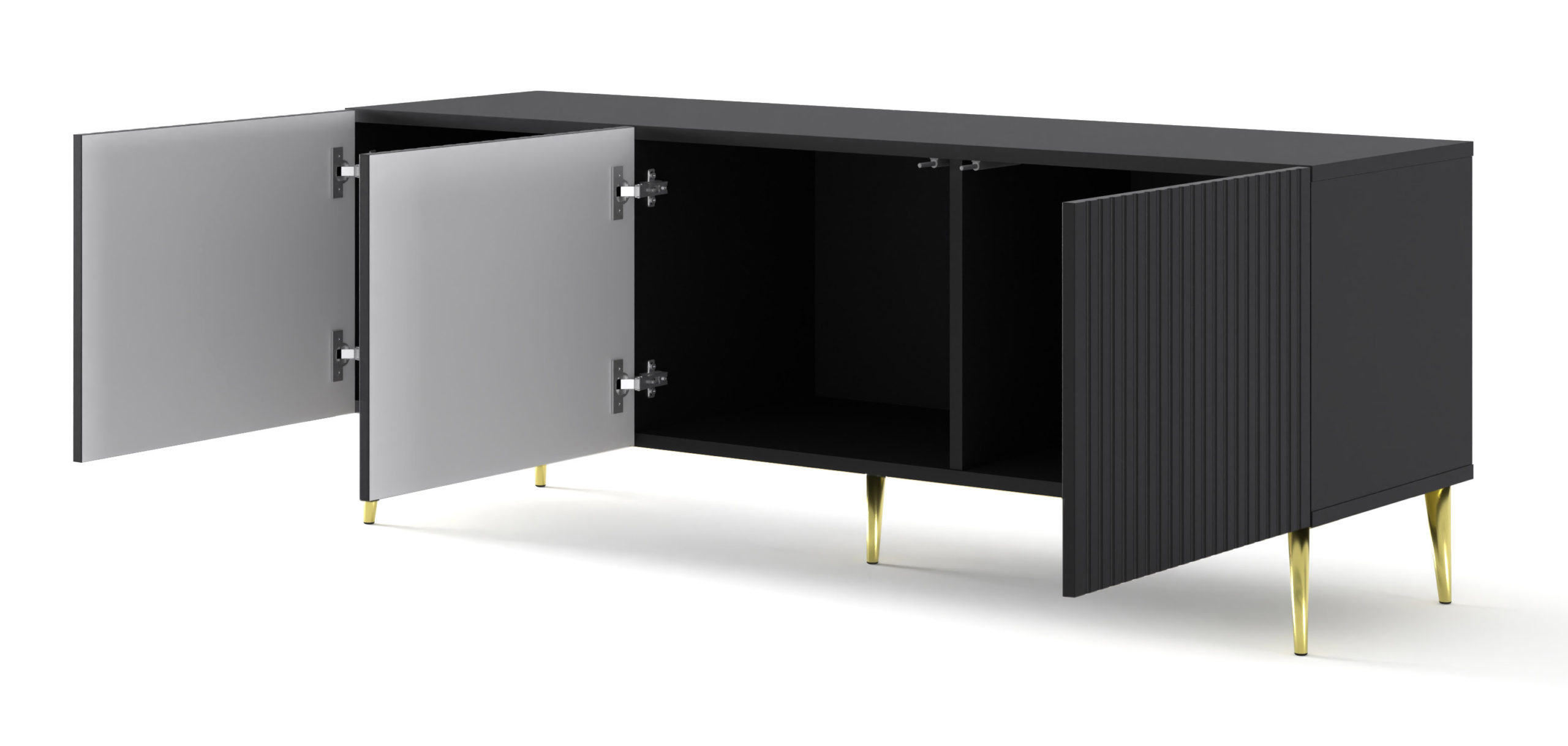Szafka RTV RAVENNA B 150 cm 3D czarny mat szpilki złote
