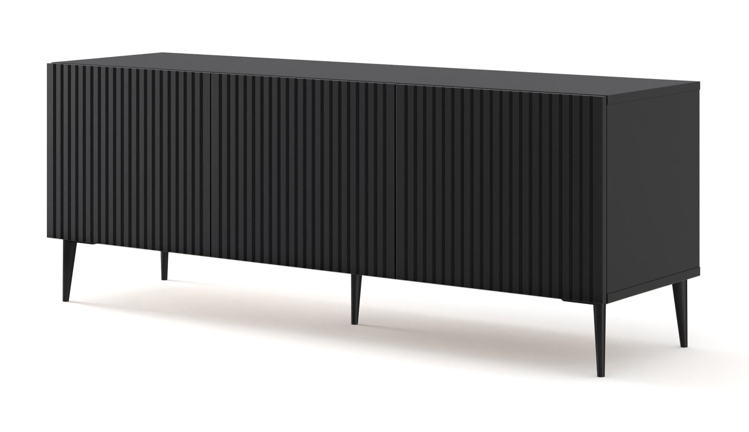 Szafka RTV RAVENNA B 150 cm 3D dąb artisan / czarny mat szpilki czarne
