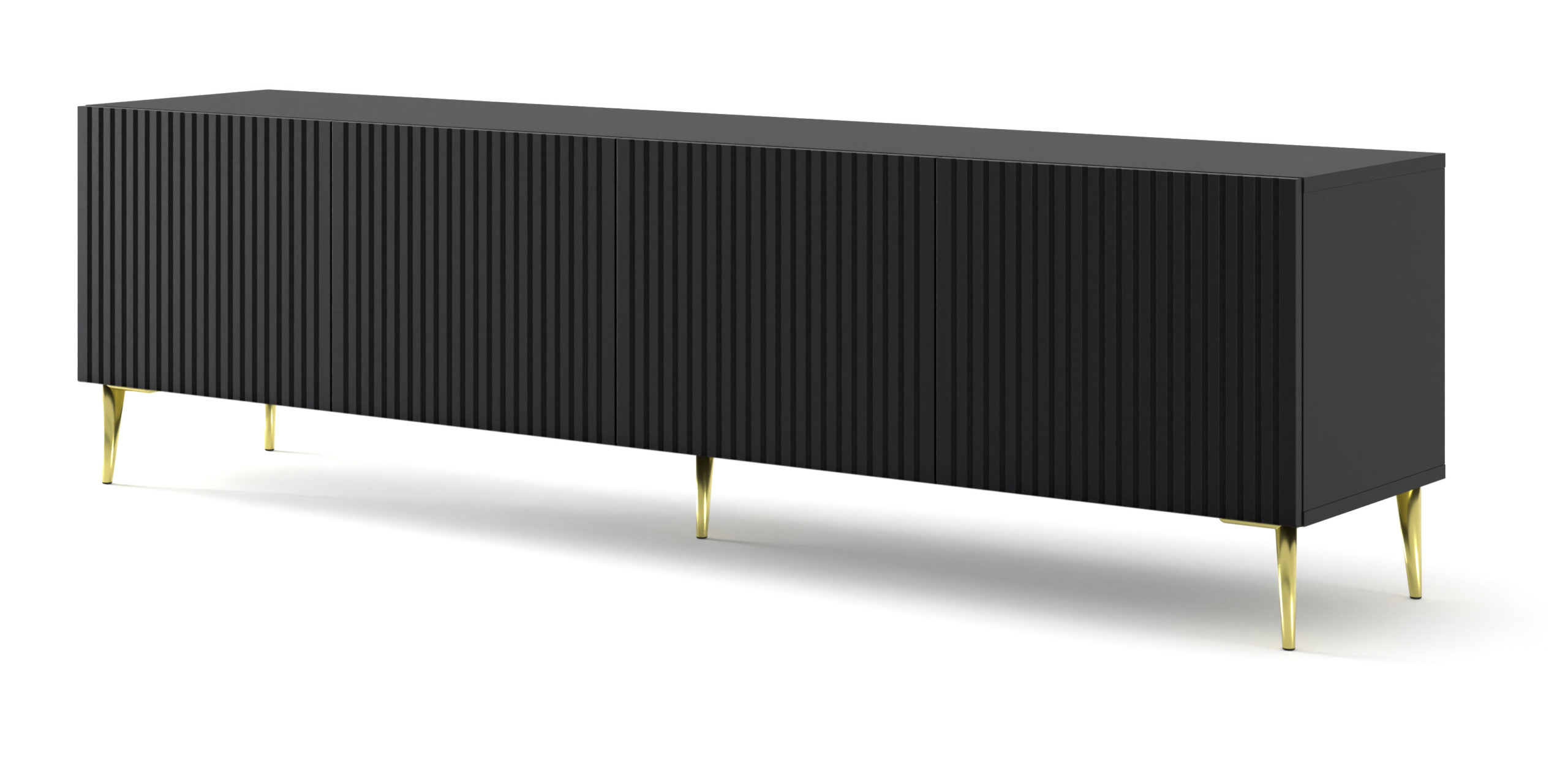 Szafka RTV RAVENNA B 200 cm 4D czarny mat rama złota