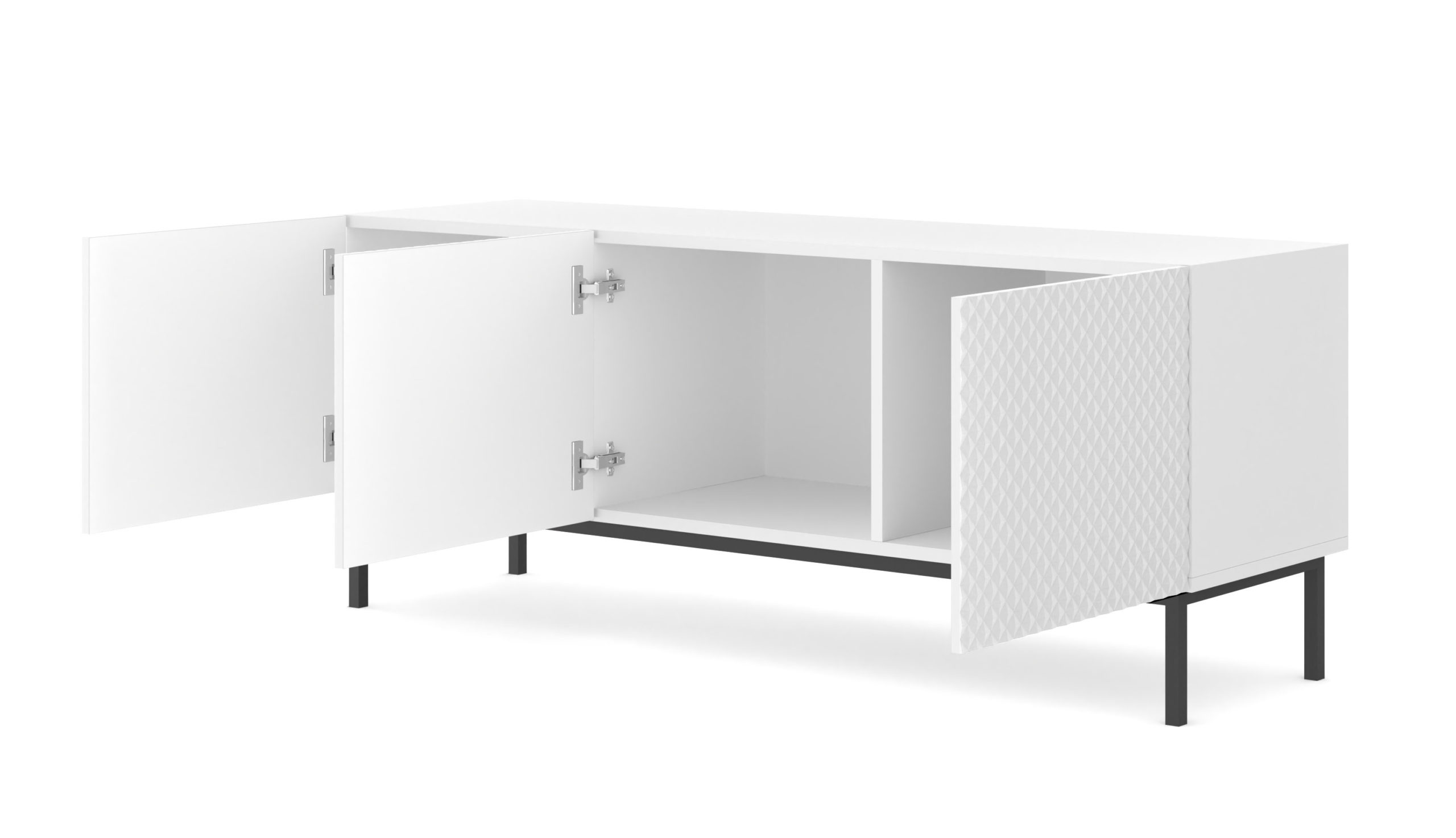 Szafka RTV RAVENNA C 150 cm 3D biały mat / biały połysk DIAMENT rama czarna