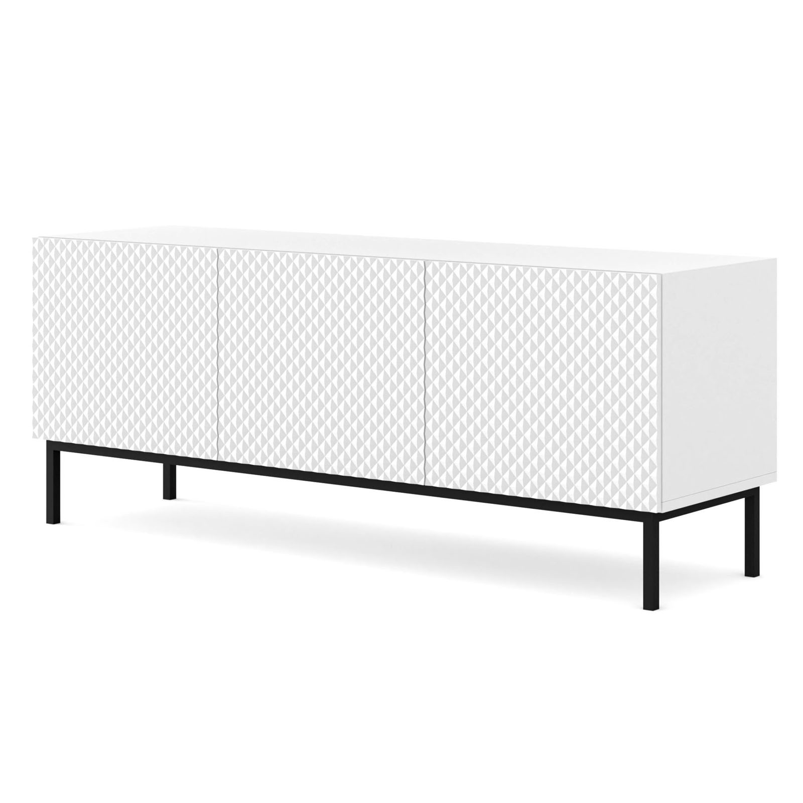 Szafka RTV RAVENNA C 150 cm 3D biały mat / biały połysk DIAMENT szpilki czarne
