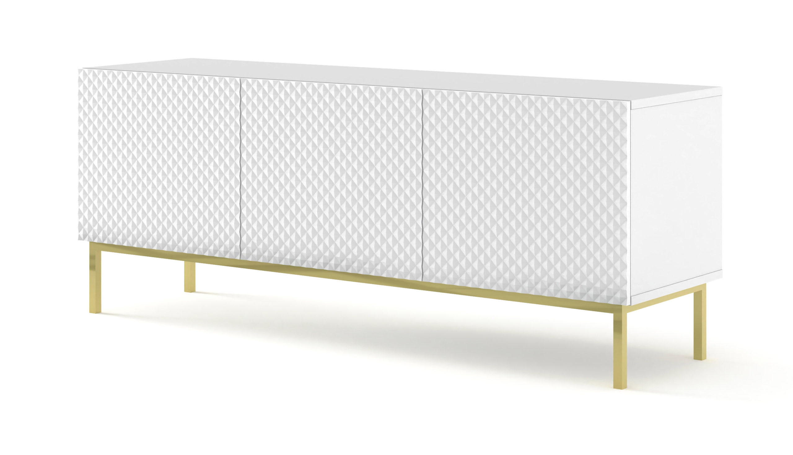 Wybierając model Ravenna, inwestujesz w mebel, który jest wyrazem wyrafinowanego gustu. Diamentowy motyw na frontach to detal, który nie wychodzi z mody, dodając wnętrzu rzeźbiarskiego wyrazu i prestiżu. Niezależnie od tego, czy wybierzesz wariant na złotych, czy czarnych nóżkach, szafka RTV Ravenna stanie się jasnym punktem Twojej aranżacji, łącząc w sobie to, co najlepsze we włoskim wzornictwie – pasję do piękna i funkcjonalną prostotę.