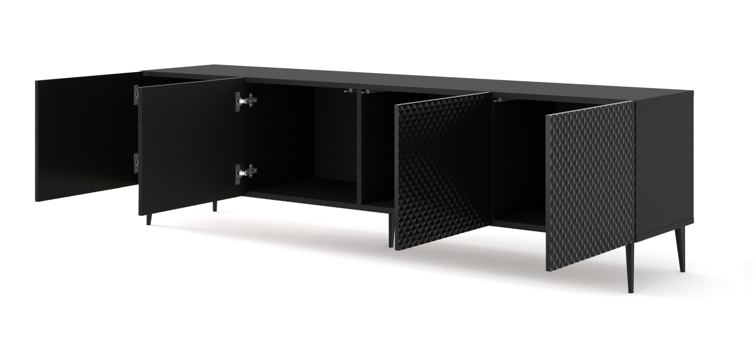 Szafka RTV RAVENNA C 200 cm 4D czarny mat / czarny połysk DIAMENT szpilki czarne