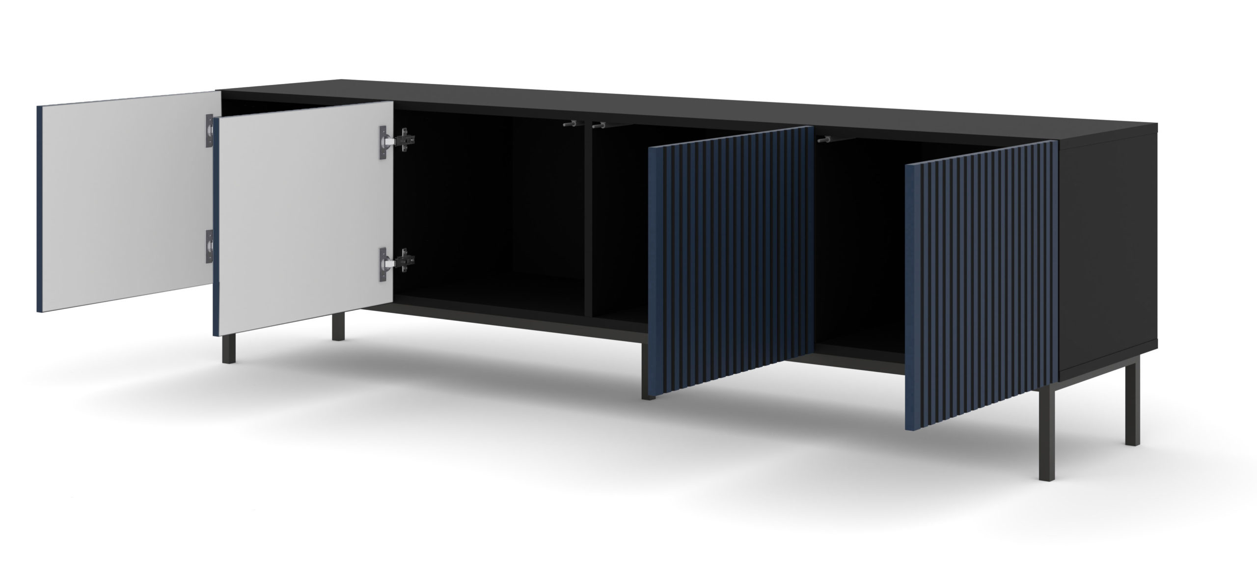 Szafka RTV RAVENNA F 200 cm 4D czarny mat / granatowy rama czarna