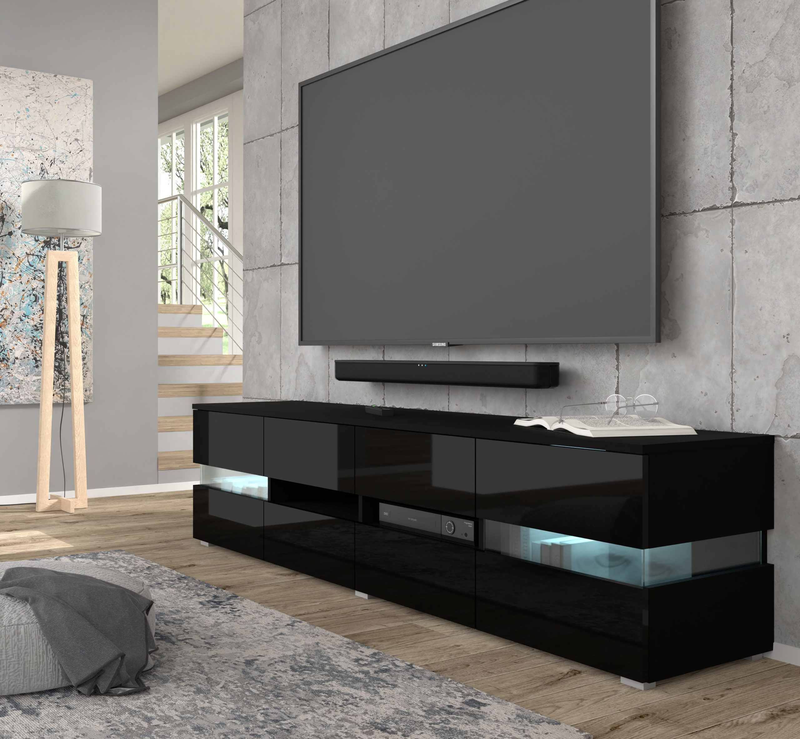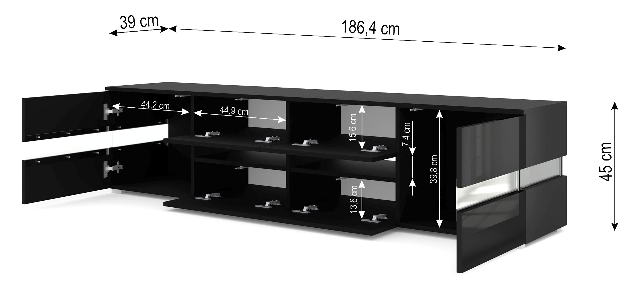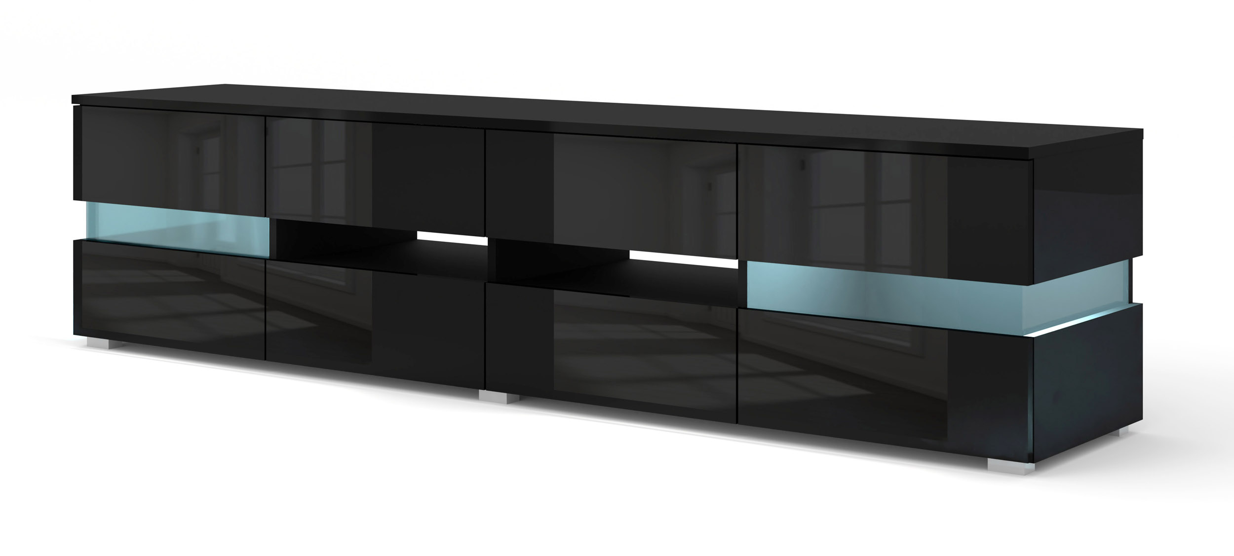 Szafka RTV VIPER 186 cm czarny mat / czarny połysk + LED