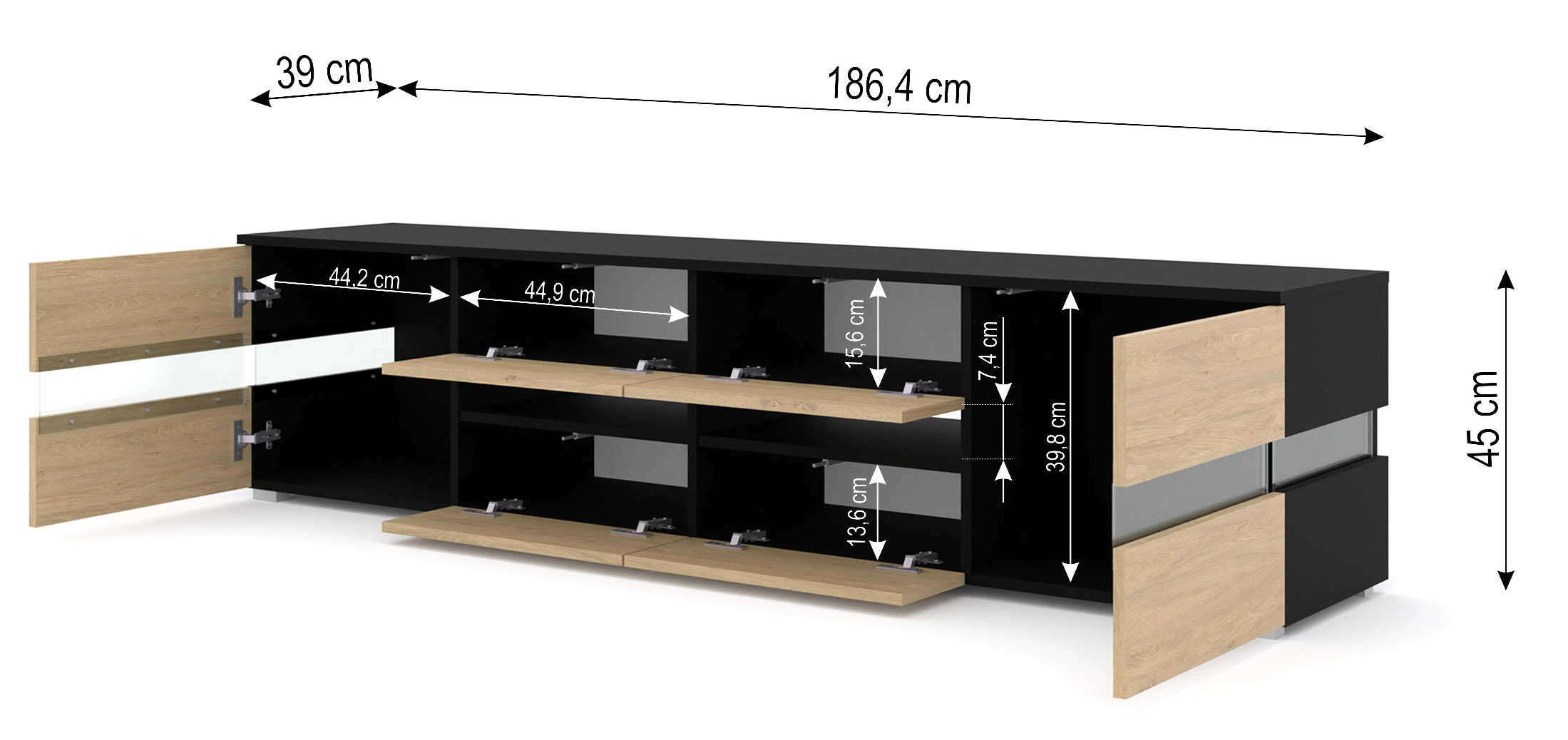Szafka RTV VIPER 186 cm czarny mat / dąb stone