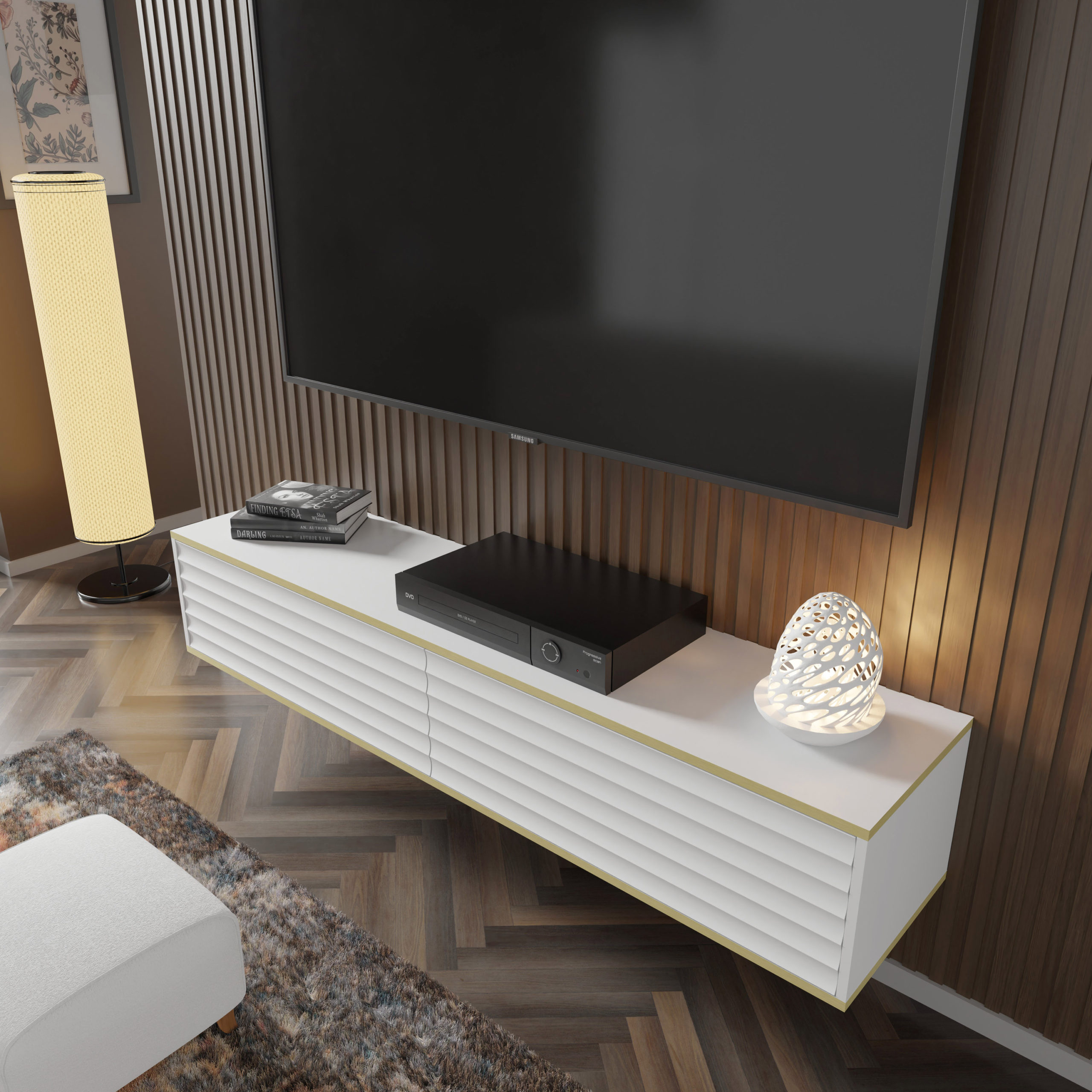 Szafka RTV WABI 180 cm wisząca frez biały mat