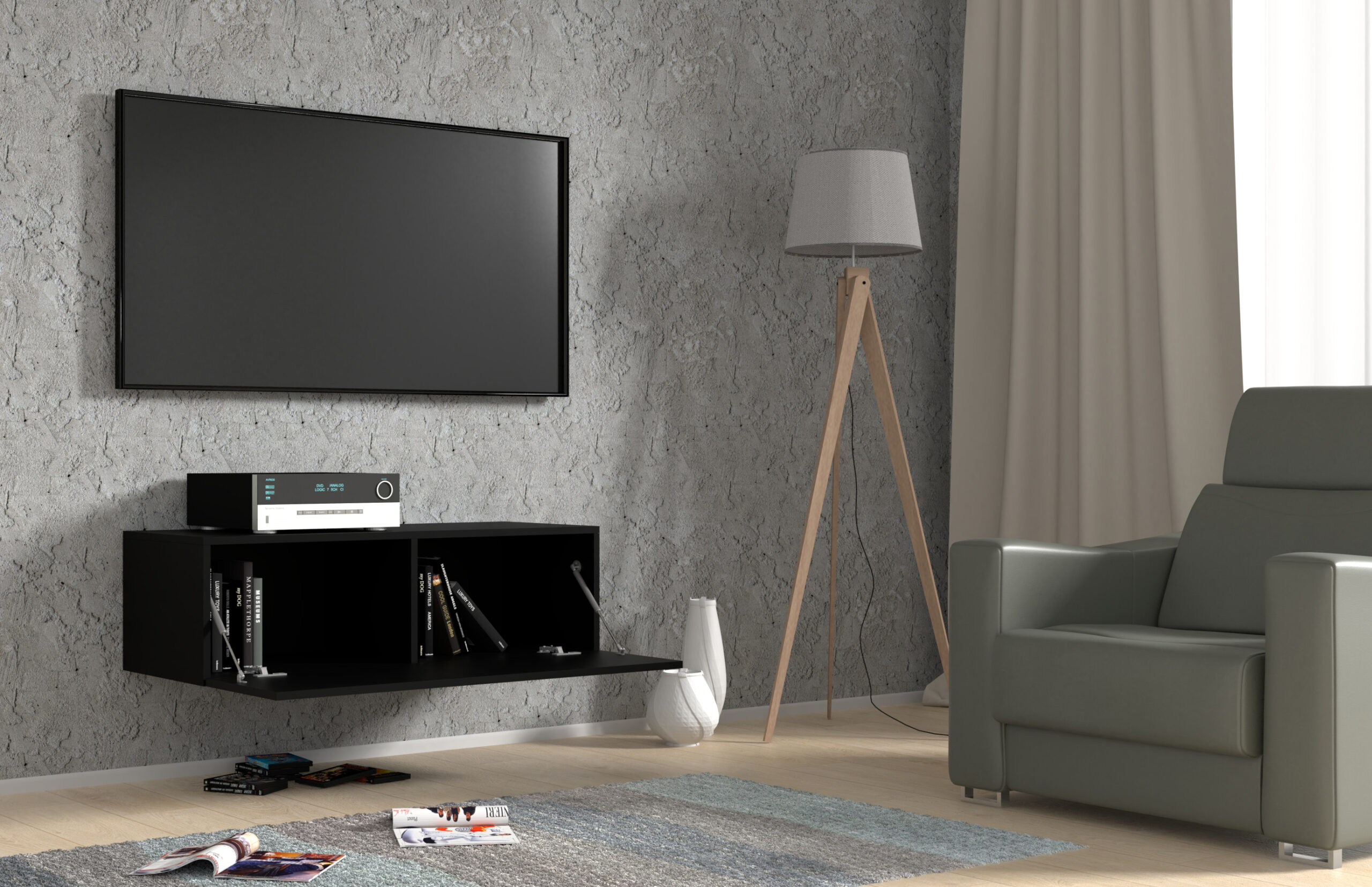 Szafka RTV wisząca BINGO 100 cm czarny mat