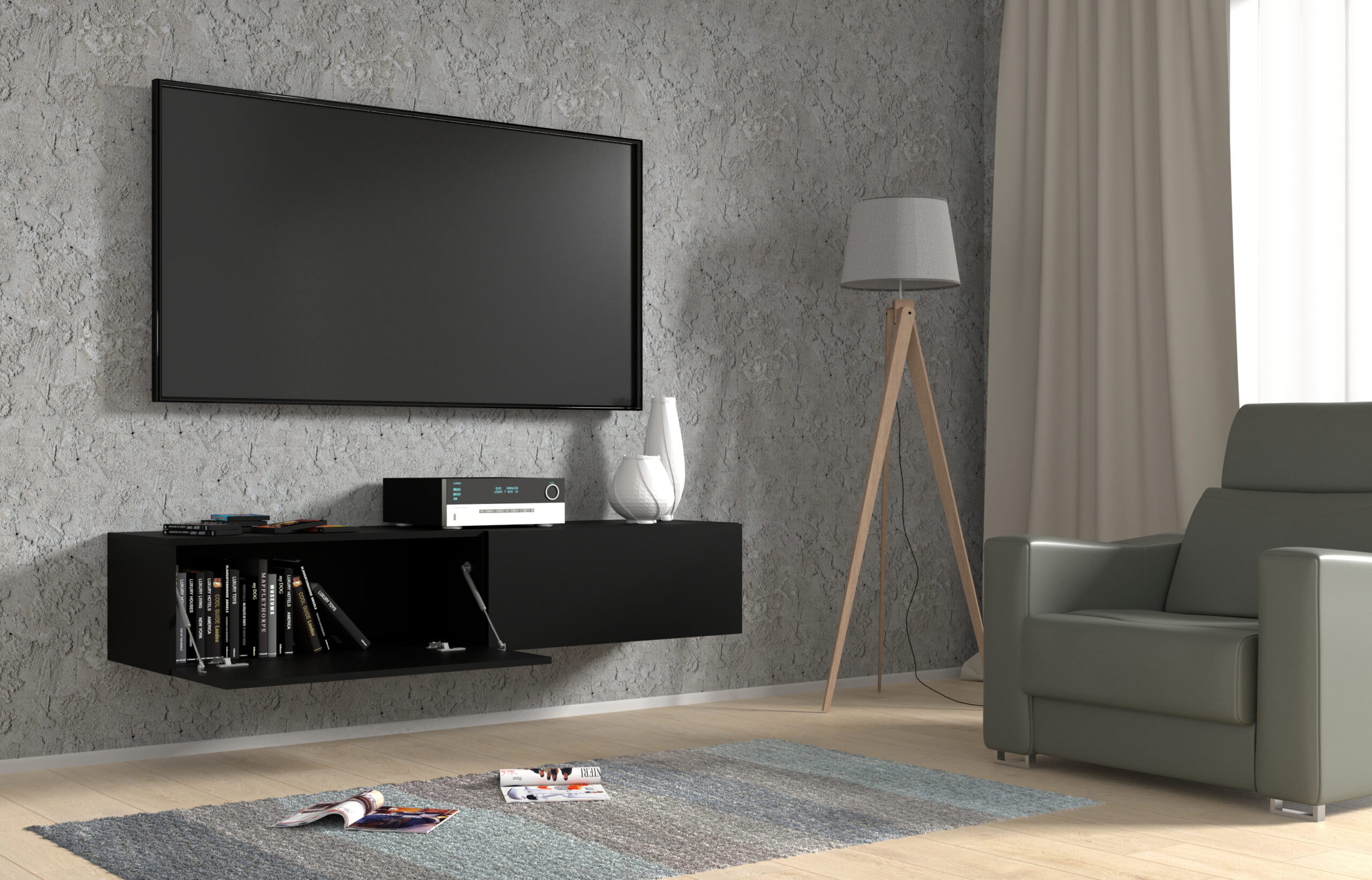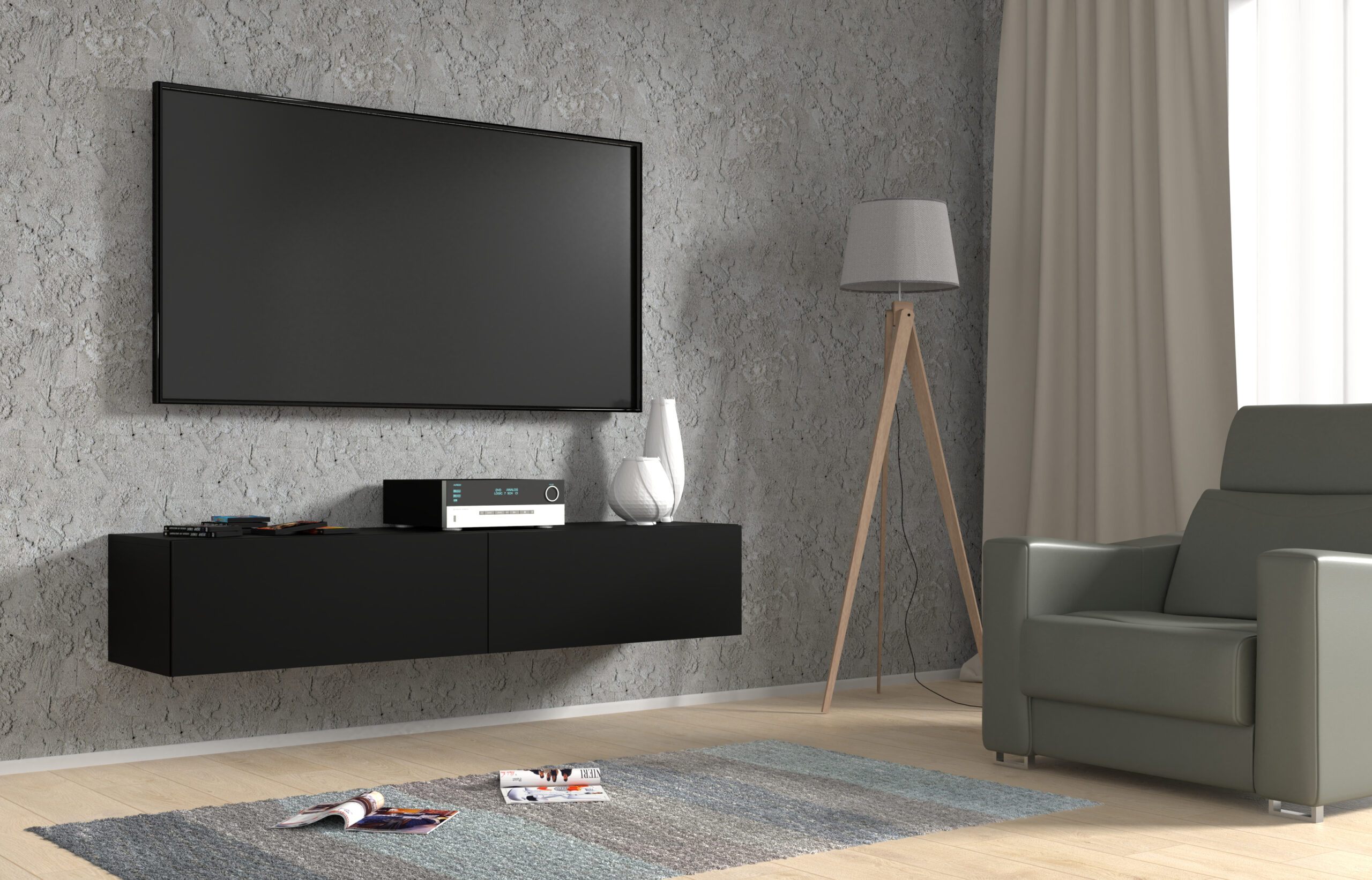 Szafka RTV wisząca BINGO 160 cm czarny mat
