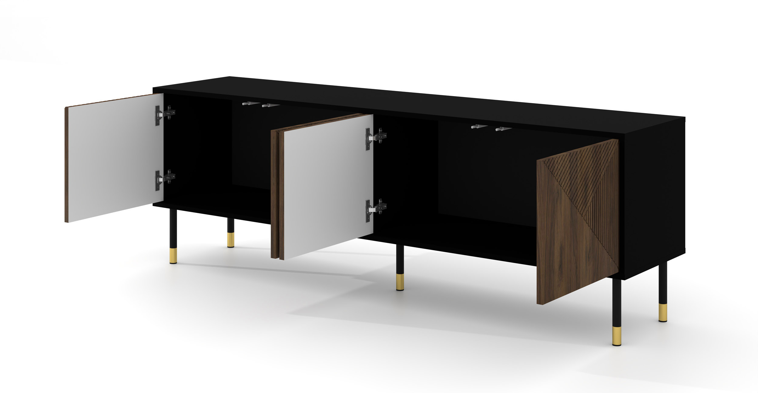 Szafka RTV WOODY IV 180 cm 4D frezowana czarny mat/dąb catania