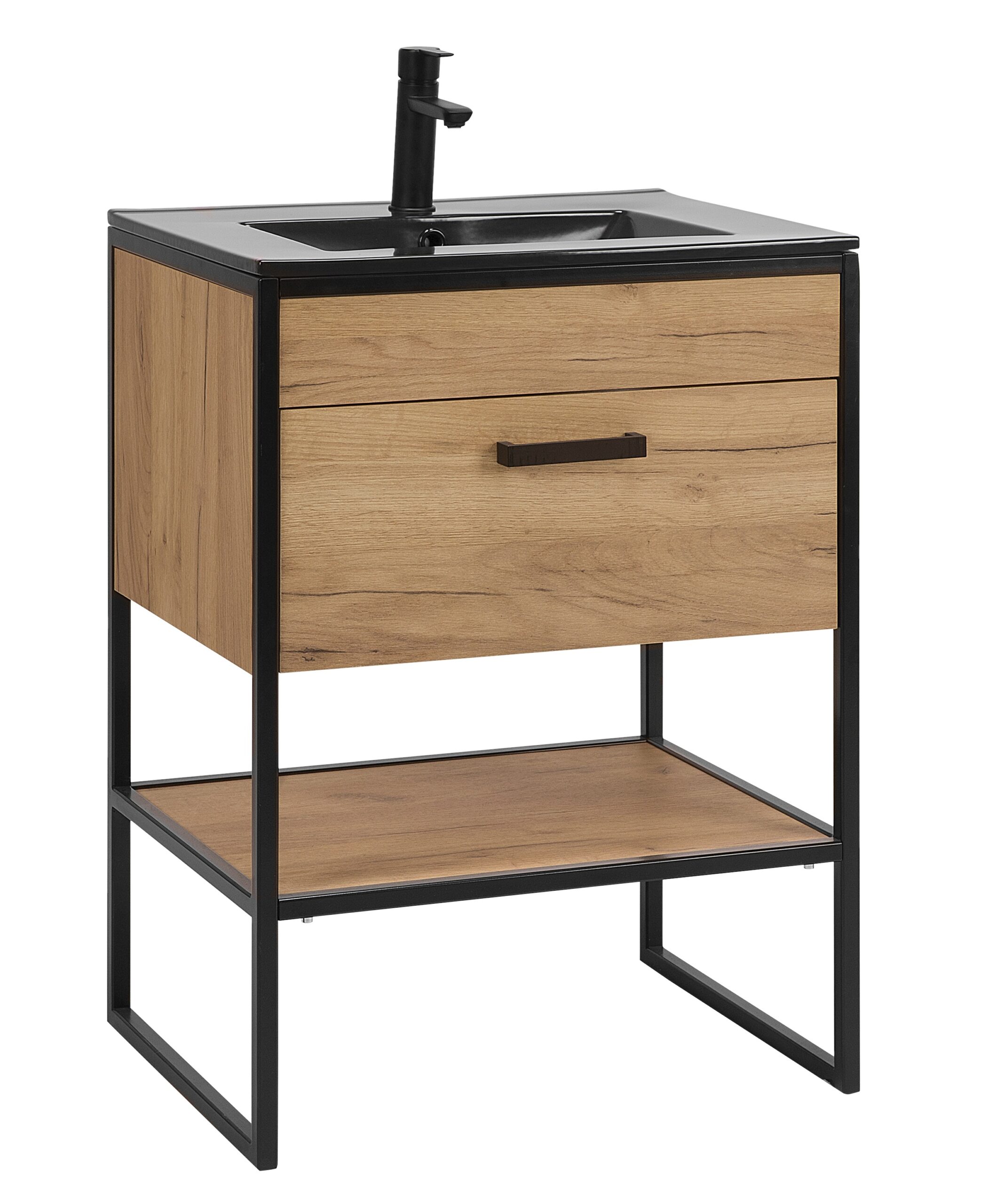 Szafka RTV AURA 150 cm wisząca stojąca SAHARA czarny + LED